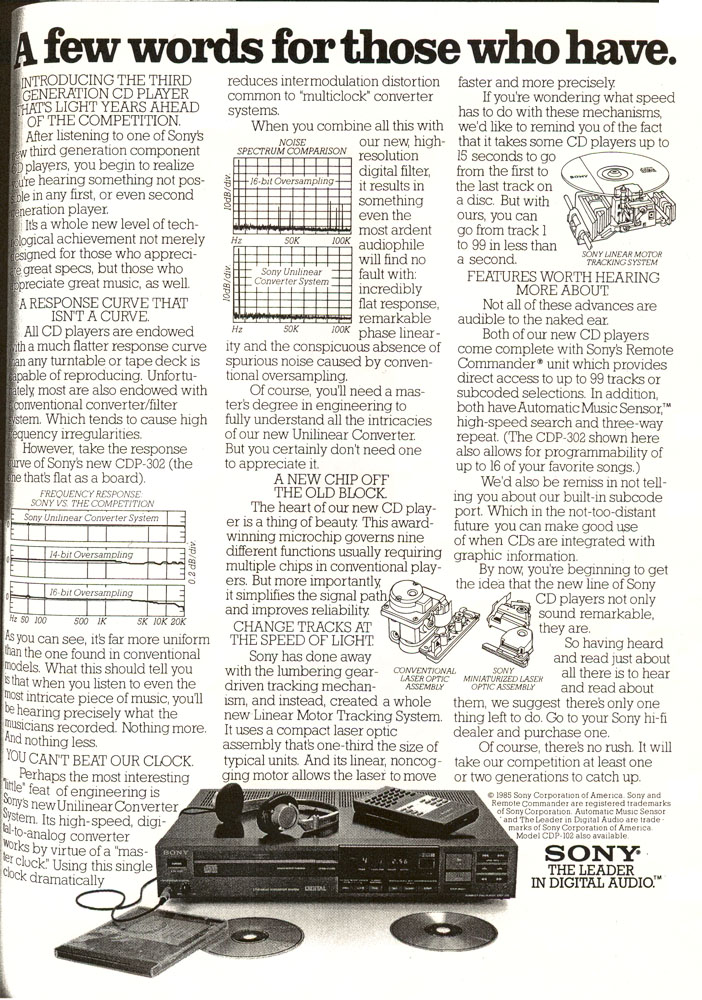 Sony "A few words for those who haven't experienced ...", March 1985 ->