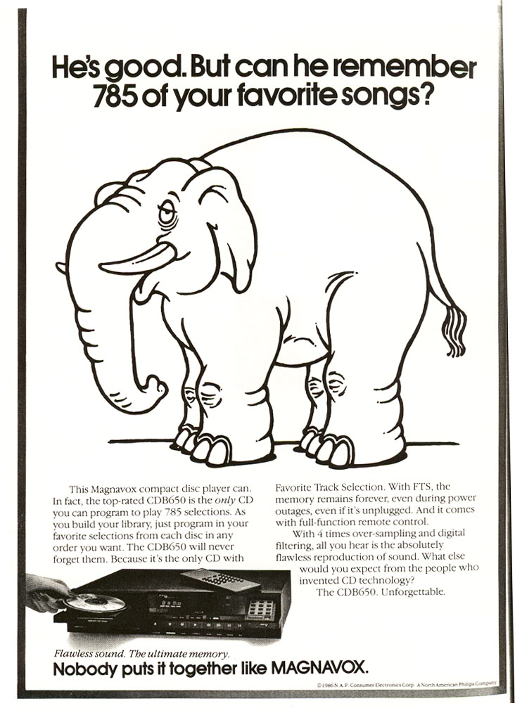 Magnavox "...but can he remember 785 of your favorite songs?". Dec. 1986