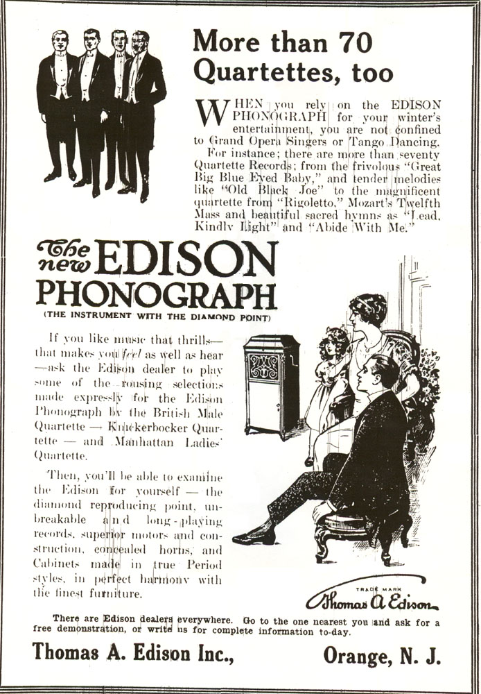 Thomas A. Edison Inc. Phonograph "More than 70 Quartettes, too", Dec. 1914