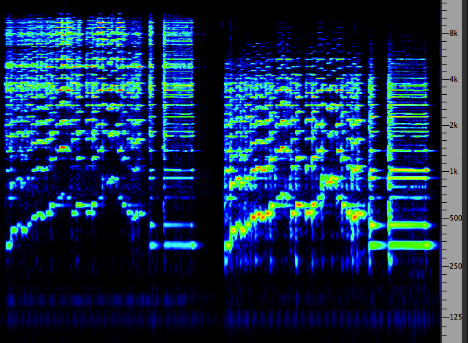 To illustrate the efficiency of these two mechanisms, here's a sound example where harmonics 1 through 10 are cancelled and restored in a complex tone, that is, they are turned off and on. Note how each harmonic is embedded in the timbre initially, and only recognized as a pitch when it is cancelled and restored.