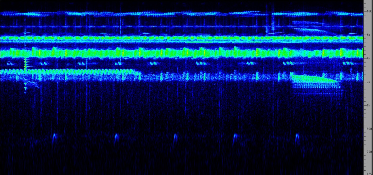 sonagrams (10 sec each) of natural soundscapes, recorded at