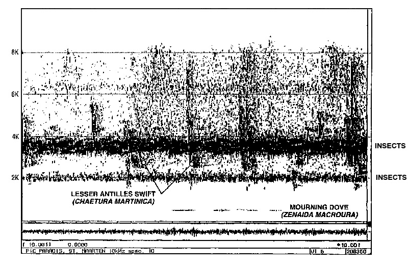 insects, with the spectrum of bird calls fitting into the