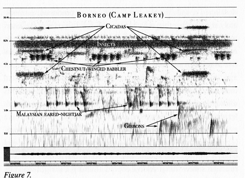 Kalimantan, Borneo. Darker consistent bands are the sounds of