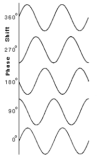 The displacement of a Waveform in time. For example, if a waveform is displaced by a complete Wavelength it is described as having a phase-shift of 360°. If it is displaced by half a wavelength (i.e. 180°) one wave will peak where the other is in a trough state and complete Cancellation will result. If they are at any other angle of phase-shift, partial cancellation will result.