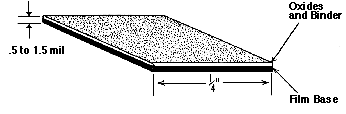 The oxide coating on MAGNETIC TAPE, composed of microscopic magnetizable particles suspended on a plastic film base or backing, such as acetate, polyester or mylar. During recording, the particles are re-aligned in correspondence with the input signal, and later during playback, these particles (also called domains) induce a similar current which reproduces the original signal. Tape without emulsion is called leader tape.