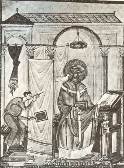 The Holy Spirit dictating the chant to Pope Gregory (600 AD)