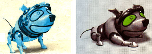 Note that the dog got modernized to a robotic version, with the consumer becoming to its "master", even though many cellphone users feel more "tethered" to the leash.