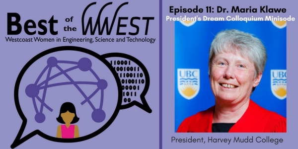 Best of the WWEST welcomes Dr. Maria Klawe, president of Harvey Mudd College in Claremont, California. Danniele chats with Maria in this minisode about how she ended up in a STEM field, her most memorable moments as a former chairholder of WWEST at UBC from 1997-2003, and how one can successfully balance a demanding career and family obligations.