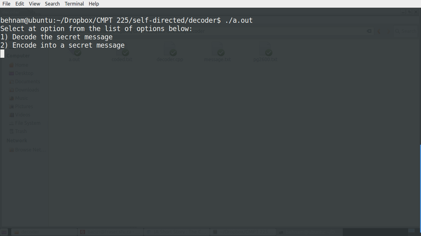 This program read the contents of a text file and prints out the number of times each word in the file is repeated. The way this works is that each time a new word is found it stores it in a Hash Table, and if the word was previously added it increments the key value of that word by one. We did the hashing part of this program in an assignment. The driver program was provided by Prof. Greg Mori. It uses double hashing to probe words that have the same hash value. The default hash function is the following: