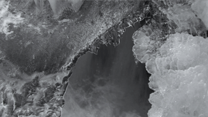 the crystalline cage of intricate and delicate ice formations. Winterscape never hides transition - rather it celebrates it. Each shot change is in fact a subtle series of constant morphs. Fresh individual visual elements from the new shot gradually layer in over the existing shot. This process continues in stages until the transition is complete and the new shot fills the frame. As soon as it is visually complete, the cycle begins again as a newer shot gradually supplants this one. This is an evolution in the fundamental treatment of the moving image. An original and immersive combination of spatial montage and visual current has replaced the standard cinematic conventions of temporal montage. Combined with the natural imagery, this visual flow creates a gentle but inexorable momentum that sutures each visual facet and component within an ongoing and seamless holistic evolution. Subject and technique mutually support this dialectic of connection and change. Landscape, detail, form and transition are fused within an organic unity of space and time. |