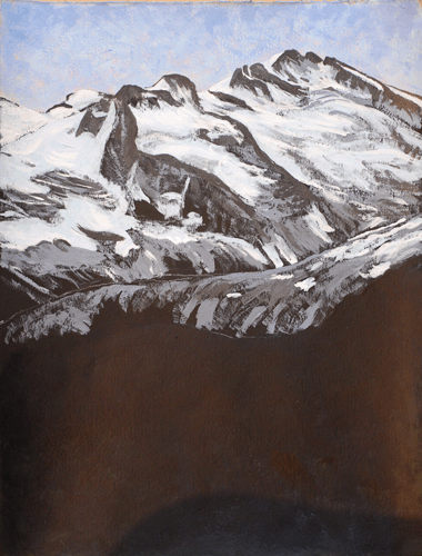 Castle Towers mountain as seen from the Singing Pass trail near Whistler, BC. On the right hand side of the painting is Castle Towers glacier, while on the left is a small portion of Cheakamus glacier.