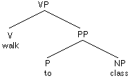 the NP class is a complement (an oblique object) of the preposition to, and the PP to class is a complement of the verbwalk: