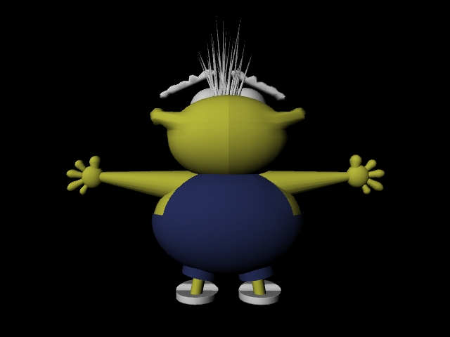 This is my character for my final project. I imported the front and side sketches into Maya as a reference to create the character. For each component, I made half of him first before duplicating an instance for the other half. I had to change his feet to slippers because I had a lot of trouble with the toes. All of his materials are lamberts with different colors.