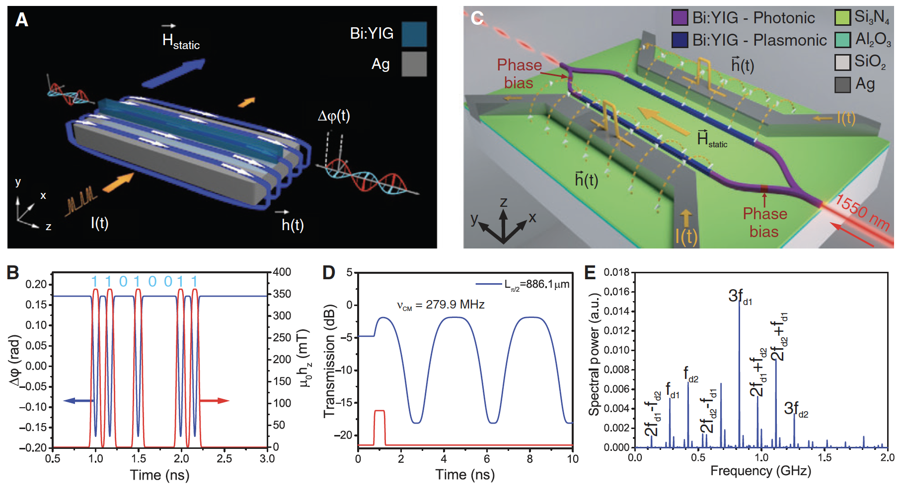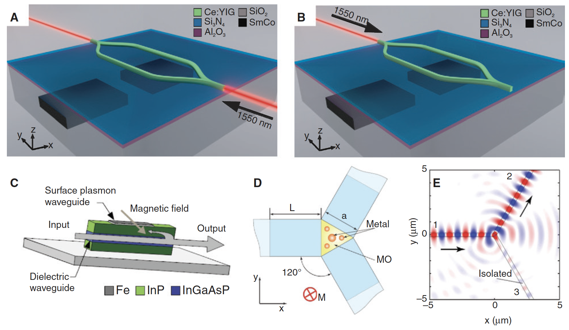 As modern complementary-metal-oxide-semiconductor (CMOS) circuitry rapidly approaches fundamental speed and bandwidth limitations, optical platforms have become promising candidates to circumvent these limits and facilitate massive increases in computational power. To compete with high density CMOS circuitry, optical technology within the plasmonic regime is desirable, because of the sub-diffraction limited confinement of electromagnetic energy, large optical bandwidth, and ultrafast processing capabilities. As such, nanoplasmonic waveguides act as nanoscale conduits for optical signals, thereby forming the backbone of such a platform. In recent years, significant research interest has developed to uncover the fundamental physics governing phenomena occurring within nanoplasmonic waveguides, and to implement unique optical devices. In doing so, a wide variety of material properties have been exploited. CMOS-compatible materials facilitate passive plasmonic routing devices for directing the confined radiation. Magnetic materials facilitate time-reversal symmetry breaking, aiding in the development of nonreciprocal isolators or modulators. Additionally, strong confinement and enhancement of electric fields within such waveguides require the use of materials with high nonlinear coefficients to achieve increased nonlinear optical phenomenon in a nanoscale footprint. Furthermore, this enhancement and confinement of the fields facilitate the study of strong-field effects within the solid-state environment of the waveguide. Here, we review current state-of-the-art physics and applications of nanoplasmonic waveguides pertaining to passive, magnetoplasmonic, nonlinear, and strong-field devices. Such components are essential elements in integrated optical circuitry, and each fulfill specific roles in truly developing a chip-scale plasmonic computing architecture.