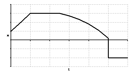 Please refer to the following position-versus-time graph when answering questions 3-5: