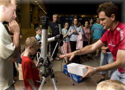 In addition to my hobby as an amateur astronomer, laid out on these pages, I teach Introduction to Astronomy at Simon Fraser University, where I also host Starry Nights @ SFU, a program of public "star parties" and other events held on the Burnaby campus, which are free and open to everyone, whether from SFU or the greater community. I am also spearheading development of a Teaching Observatory and Science Outreach Centre at SFU. In 2009 we hosted over 3,500 guests at a wide variety of astronomy events. A major effort was hosting over 2,150 grade-school age kids accompanied by over 300 teachers/parents/guardians, from more than 70 school and community groups, at daytime astronomy workshops. As part of this outreach program, we donated almost 100 starter telescopes to these workshop groups, and to individual families whose children attended a workshop, followed by four SFU star parties. These programs are continuing, and as of early 2012 we have hosted a total of over 6,000 people at our astronomy workshops, star parties, public lectures, and theme nights! in 2012 one can expect some major new developments in this program, and on the SFU Burnaby campus! For more information on SFU's astronomy outreach programs, please check the Starry Nights @ SFU website.