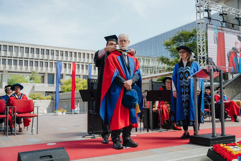 ![]() being hooded by the Registrar |