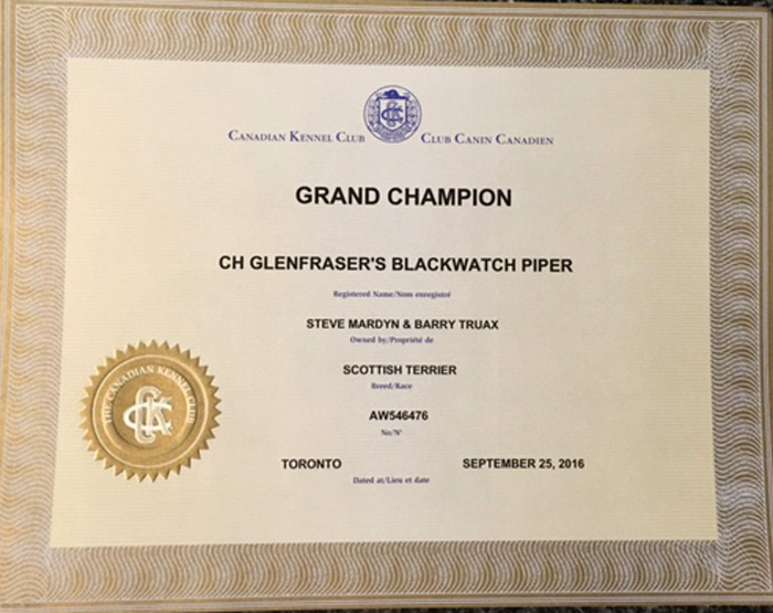 Sire: Ch. Glenfraser's Single Malt 2nd ("Mackie")
