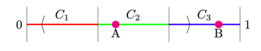 Here is a drawing to explaining why \(\{{\varphi\over2}a\}=A\) and \(\{{\varphi\over2}(a+f)\}=B\) must lie on distinct \(C_i\) intervals.
