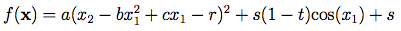 This function is usually evaluated on the square x1 ∈ [-5, 10], x2 ∈ [0, 15].Global Minimum: