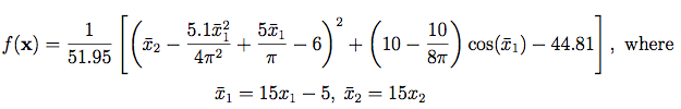 Picheny et al. (2012) use the following rescaled form of the Branin-Hoo function, on [0, 1]2: