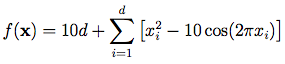 Dimensions: dThe Rastrigin function has several local minima. It is highly multimodal, but locations of the minima are regularly distributed. It is shown in the plot above in its two-dimensional form.