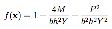 Dimensions: 3The Short Column function models a short column with uncertain material properties and subject to uncertain loads (Eldred et al., 2007). The parameters b (width of the cross-section, in mm) and h (depth of the cross-section, in mm) have nominal values b = 5 and h = 15.