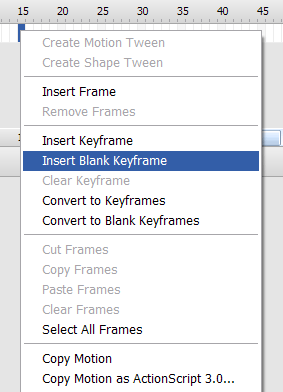 2. Click frame 15, and right click to insert a blank keyframe. You now have 15 frames full of nothing but a circle.