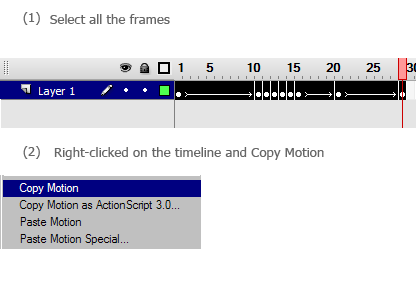 In Flash CS3, not only that we can copy frames, we can also copy motions. Copy motions allows you to apply the same motion to a complete different object.