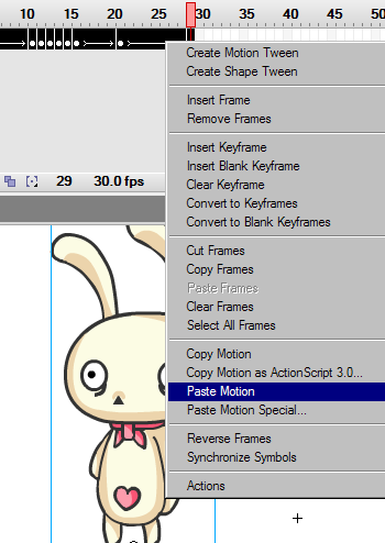 4. Select on the bunny, click on the timeline and right-click>>Paste Motion;