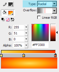 2. Go to Fill Color and change the color to vibrant orange; Also, go to property inspector and disable the stroke contour;