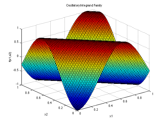 Dimensions: dThe Oscillatory family of functions is quickly integrated analytically, to high precision. It is shown in the plot above in its two-dimensional form.