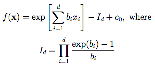 The plot above shows the two-dimensional form of this function, with b = (2, 1.95) and c0 = 0.