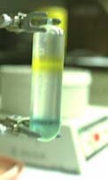 Following the removal of hemocytes, potassium bromide is added to the hemolymph to form a 44 % solution. This is over layered with phosphate buffered saline (PBS), and centrifuged to form a density gradient. Eventually, all proteins float or sink to the zone that corresponds to their density. Having a lower density, the yellow colored lipoprotein floats higher than non-lipoproteins, including a green cyanoprotein. The separated proteins are fractionated. For the individual fractions, the density is determined by refractometry, protein content and composition by the Bradford assay and electrophoresis, respectively, and the lipid composition can be analyzed by thin layer and gas chromatography.