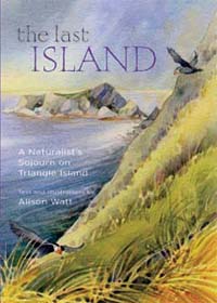 | "The Last Island", published in 2002, gives an intimate overview of the natural history of Triangle Island. Alison Watt, a poet, artist, and researcher, wrote the book describing her two visits to the island, separated by more than 15 years. She tells the story of a season on the island, illustrated with her own watercolours of the landscapes, flora and fauna. The book is available at bookstores or from Harbour Press Publishing (http://www.harbourpublishing.com/index.php). | ||||||||||||||||||||||||