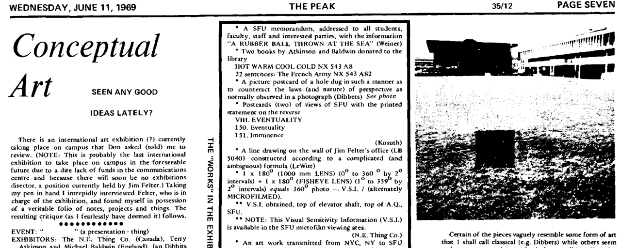 Before the Simon Fraser Gallery was established, resident Jim Felter resourcefully turned this lack of dedicated space into an opportunity to transform the campus itself into a gallery.
