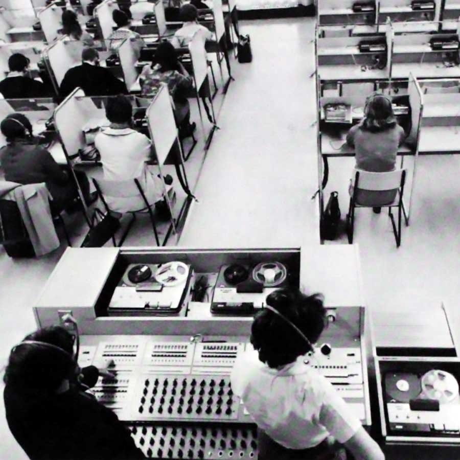 In the '60s, courses offered by the Department of Modern Languages would have a lab component where students would listen and repeat passages spoken by native speakers and practice answering questions in the language they were learning. Students were not graded on this lab work but it was thought to help students progressively gain confidence in speaking the new language.