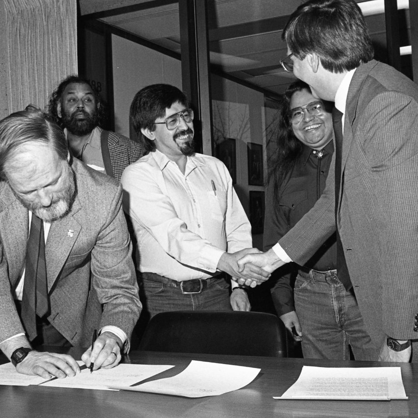 SFU begins offering outreach courses and programs in anthropology, archaeology, linguistics, and First Nations studies in Kamloops, led by a joint SFU-Secwepemc Cultural Education Society (SCES) steering committee, which was co-chaired by Chief Ron Ignace of Shuswap Nation Tribal Council and sociology professor Hari Sharma.