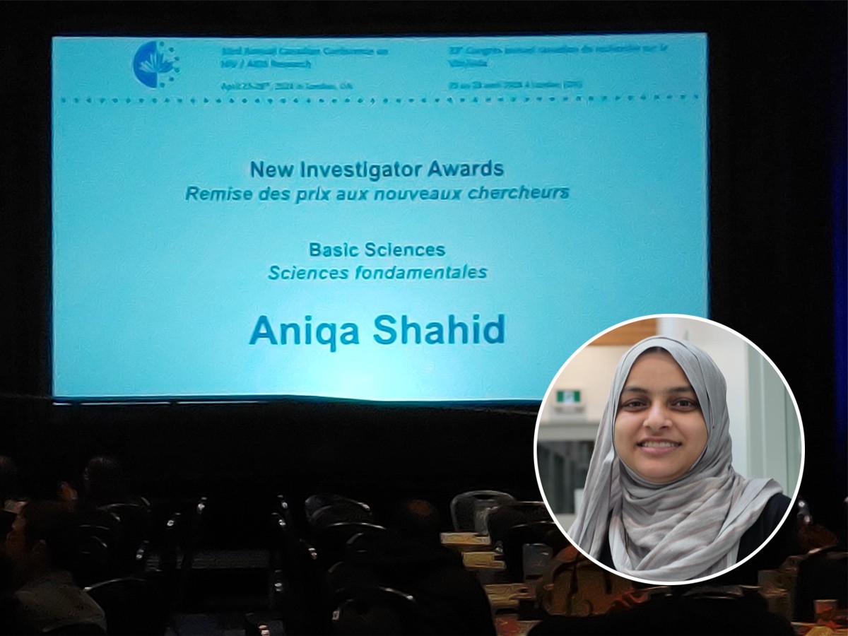 FHS PhD candidate Aniqa Shahid was named the top young HIV basic sciences researcher in Canada by the Canadian Association for HIV Research (CAHR) at their 33rd annual conference in London, ON