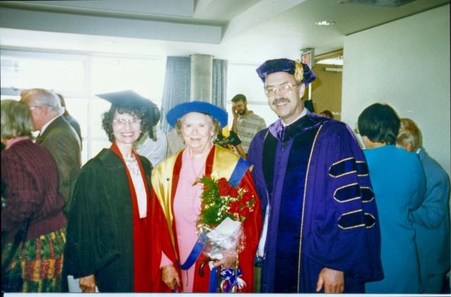 | Wishes: | It was in the early seventies when Thelma invited us to her house to a party and we have remained close friends ever since. Thelma and I met frequently at events of the University Women’s Club of Coquitlam and we enjoyed many evenings playing bridge with the CFUW bridge group. Also Thelma was for me an example in life, and she supported and encouraged me when I started the conferences “Women Do Math” at SFU. After the Turkish invasion of Cyprus in 1974 my nephew Michael and his family came to Canada. Michael took a course from Thelma and he loved it. On our return from our sabbatical year at Yale he was telling me about the courses he enjoyed most at SFU and mentioned Thelma. Later on, I talked to Thelma who asked me what was his name and I was impressed that she remembered him and after that Thelma always asked me about how he was doing. Thelma loved her students and she was genially interested in them. I admired Thelma’s achievements, her kindness and her true friendship. We went together to events, to lunches with friends, and had elegant dinners in her apartment and in our house. This is what my husband, Len, noted in his diary on Thursday, September 16, 2010 “Thelma Finlayson (now 96 years old) treated us to dinner at Sokela Restaurant up the hill, and then a liqueur at her apartment near Lougheed Mall”. Now we join the many friends to wish our centenarian, dearest Thelma, Happy Birthday and Many Happy Returns. |