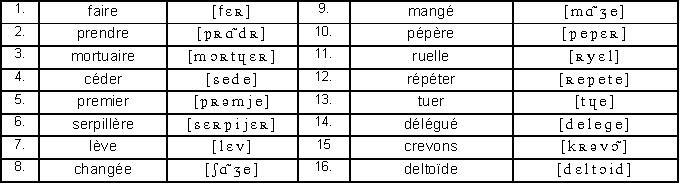 Déterminez à l’aide du corpus ci-dessous si les deux voyelles antérieures non arrondies d'aperture moyenne (mi-ouverte et mi-fermée) sont deux phonèmes distincts ou deux variantes contextuelles en français méridional: