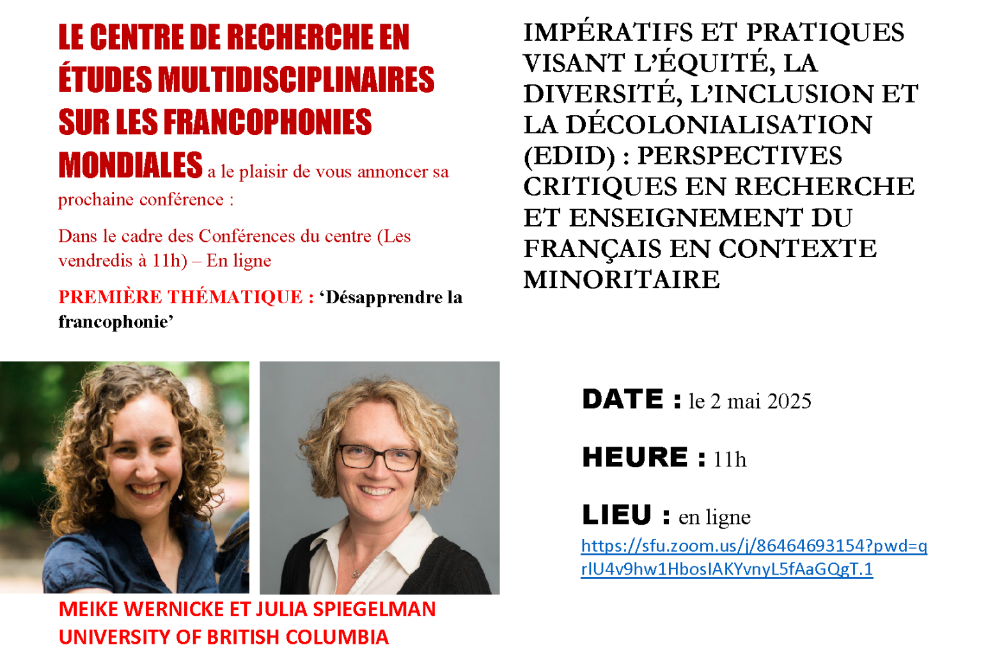 *Les enregistrements de toutes les conférences, sauf celui du 28 février 2025, sont disponibles sur demande.