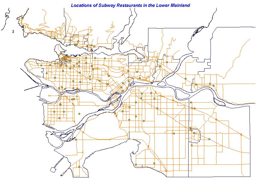 LOCATIONS OF SUBWAY RESTAURANTS IN THE LOWER MAINLAND