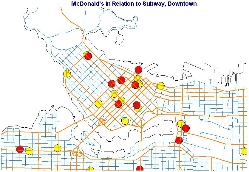 of Subway (250 meters), one can see that both restaurants have almost an