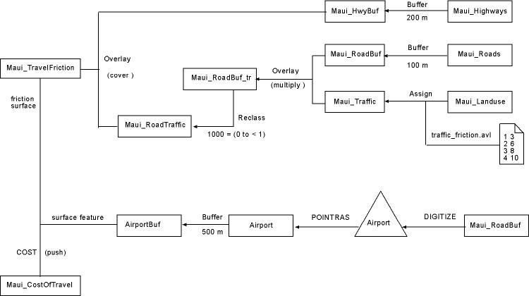 agricultural = little traffic and flat, friction value 3Maui_Landuse.rst -------- (ASSIGN) ---------> Maui_Traffic.rst ( traffic_friction.avl ) |