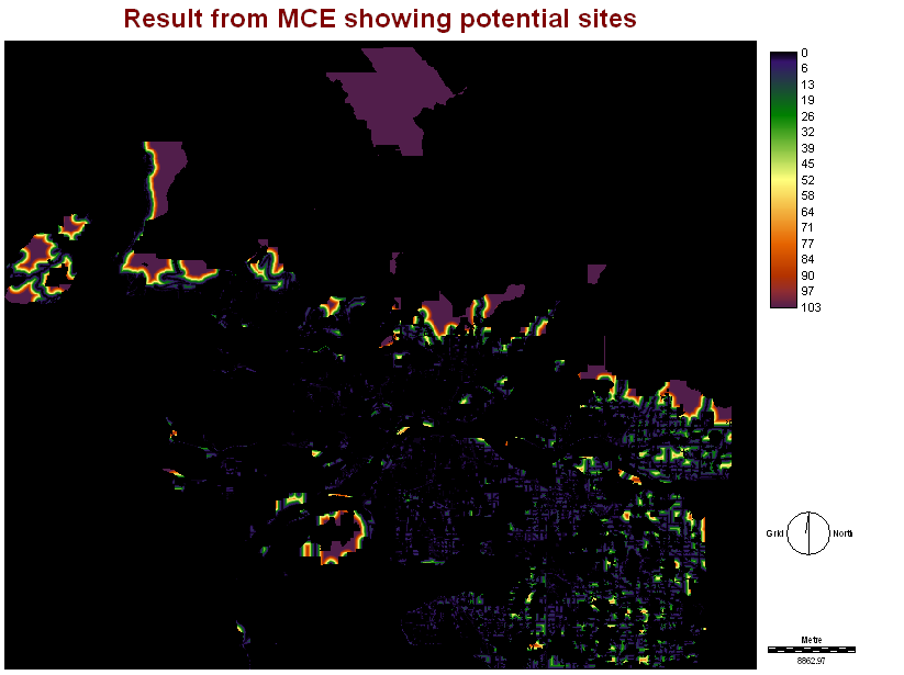 At first, I could not get my Skytrain image to function properly. It was not until near the end of my project that I got it to work properly. So once I had it functioning right, I overlayed the Skytrain image with the POTENTIAL SITES image to get the plots that were within close proximity to the Skytrain Line.
