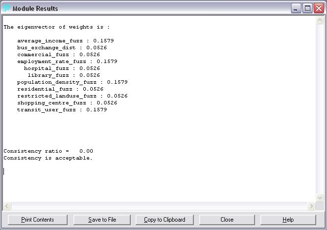 After working with the constraints and factors, all these layers were incorporated together to produc potential Skytrain station locations. For this purpose, MCE with the Weighted Linear Combination (WLC) method was used based on the constraints and factors. The weighting of the factors was performed as a part of WLC method and the pairwise comparison matrix's are shown in the tables below.