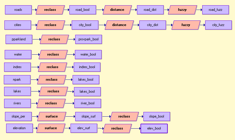 This macro model developed in IDRISI, exhibits the break-down of the data preparation process to conduct the MCE.