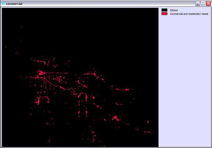 The commercial areas of Metro Vancouver are a factor of analysis based on the assumption that tourists would like to visit these districts. Using the original landuse file, the 'assign' module assigns the new value, 1, to all commercial areas (other landuses will automatically obtain the value 0).