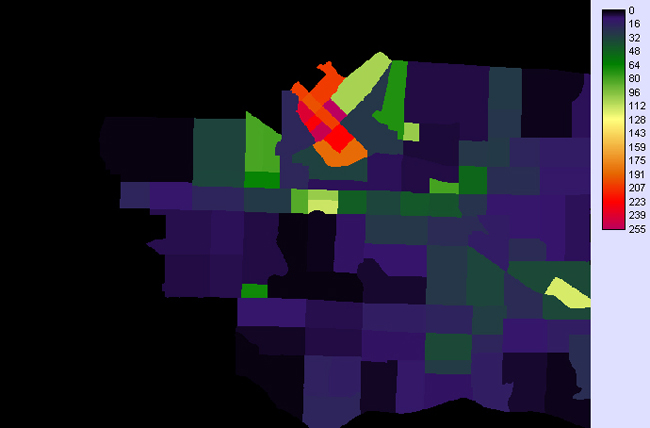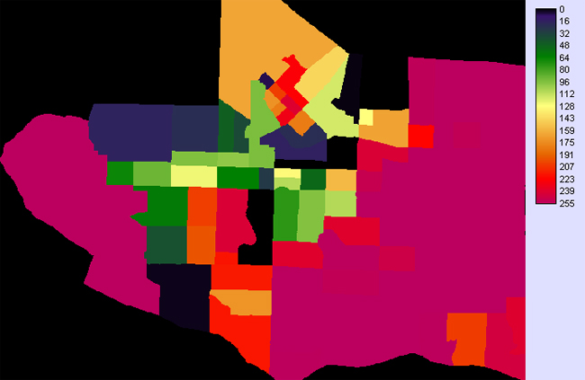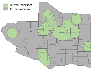 I did a quick analysis in ArcMap on the existing community gardens to see what the trend in income is. I made a 1km buffer around the existing community gardens and intersected it with Census Tract shapefile: